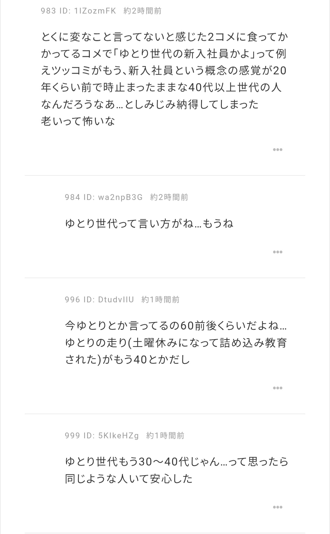 元祖ゆとり世代(1987生)が今年39(当事者)なので、ゆとり世代は全員それより若いはずなんだけど、ゆとりはもっと上と言ってる人はどうしたんだ…?実はゆとりって地域差とかあるの…?