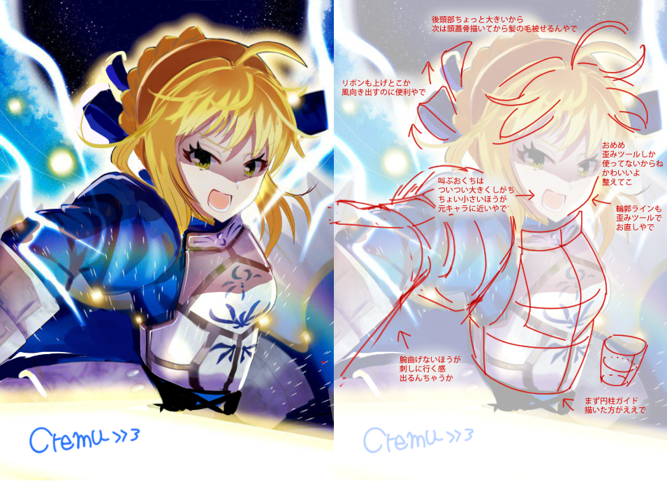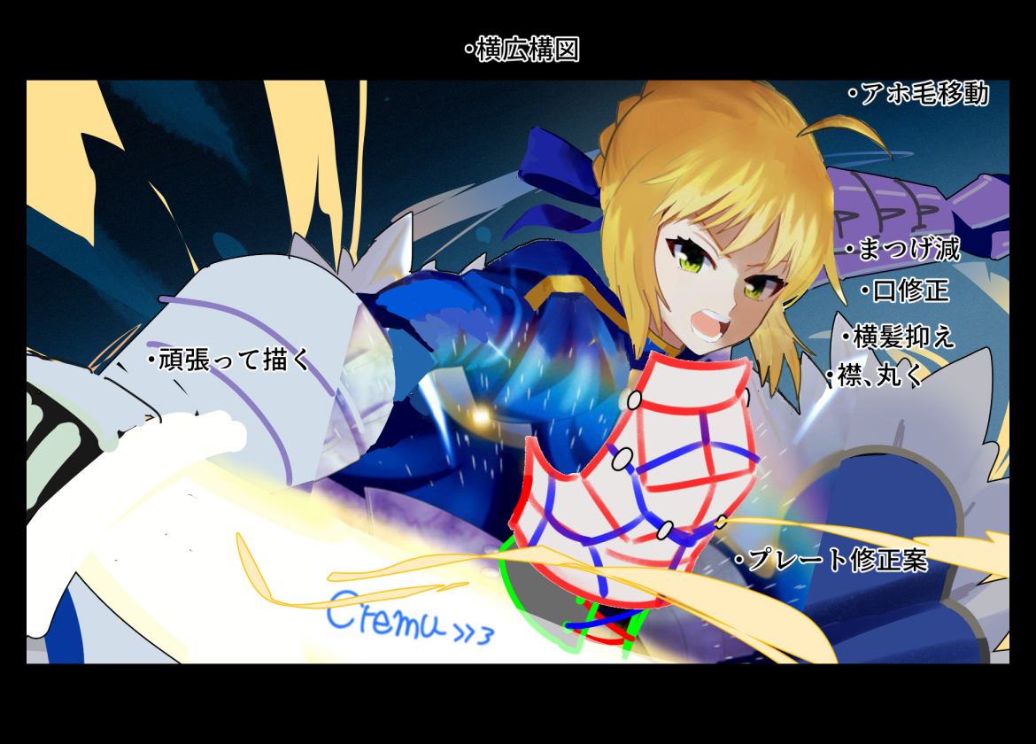 セイバーって剣士だったよね?剣を描いて甲冑も重量感あったらいいかも