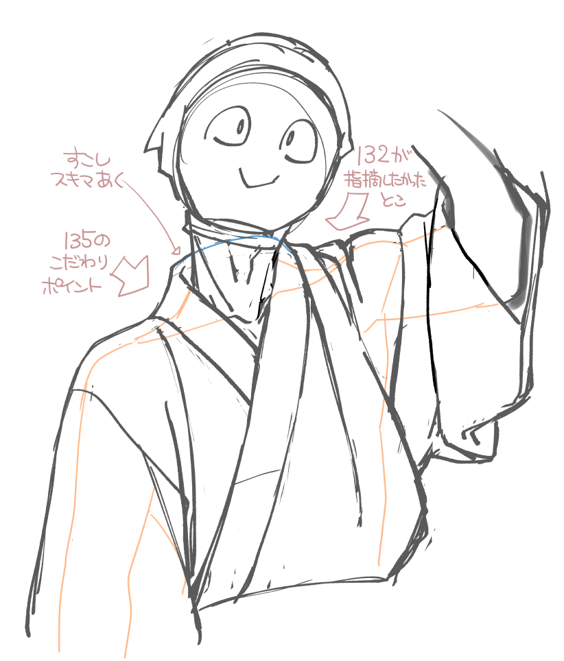 着崩れた印象回避のためにあえて132の描き方すると思った。