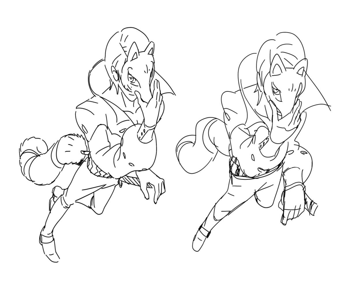元キャラが足が長くて頭身が高いので俯瞰で描くとどうしても元キャラのシュッとした感じが出しづらいので強引に足の長さを意識してみたよ