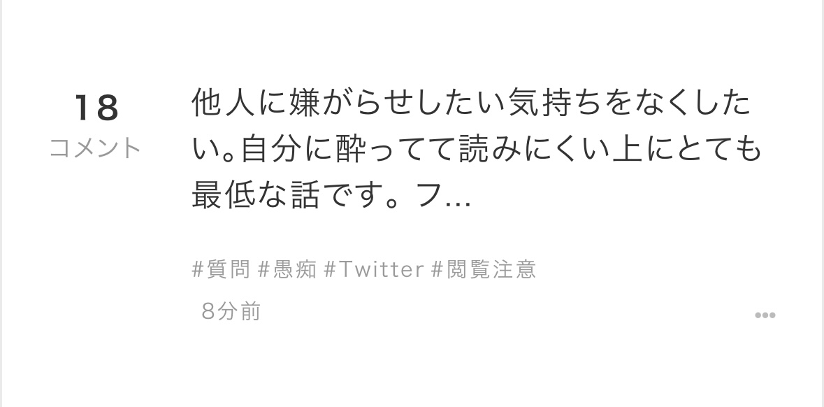 いつも楽しそうにしてきて自分の好きを貫けて、自分のように他人を平気で傷つけられる人に出会わなかった自己肯定感の高い人が昔から苦手で、そのような人を見る度に一生物のトラウマや傷が残るようなことになって欲しいとばかり願っていて、同人や友人などの関わった人以外にも街中で通りかかった人の...続きを見る