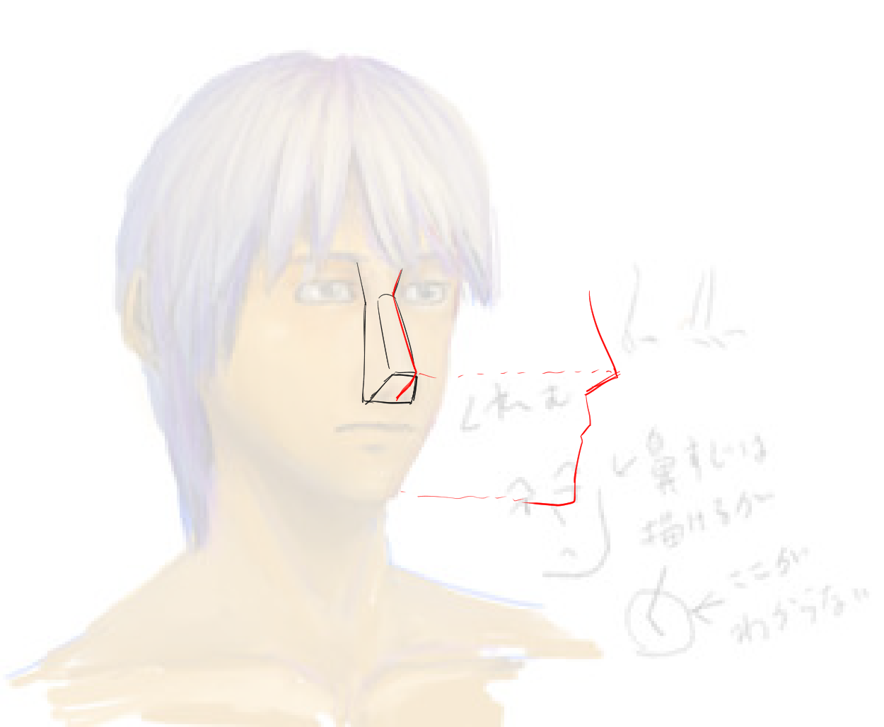 鼻についてはデッサンや解剖や立体から顔の凹凸をきちんと学んでから考えよう