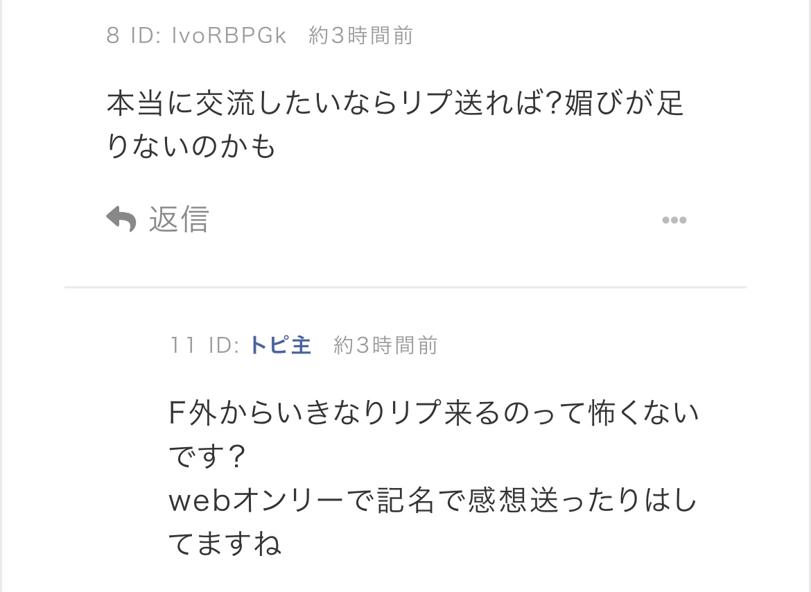 トピ主のコメ返が結構消されてるっぽいからわかりにくくなってるかもだけど、マジ後出し情報とか返信の語彙が酷いのあったんだよ。