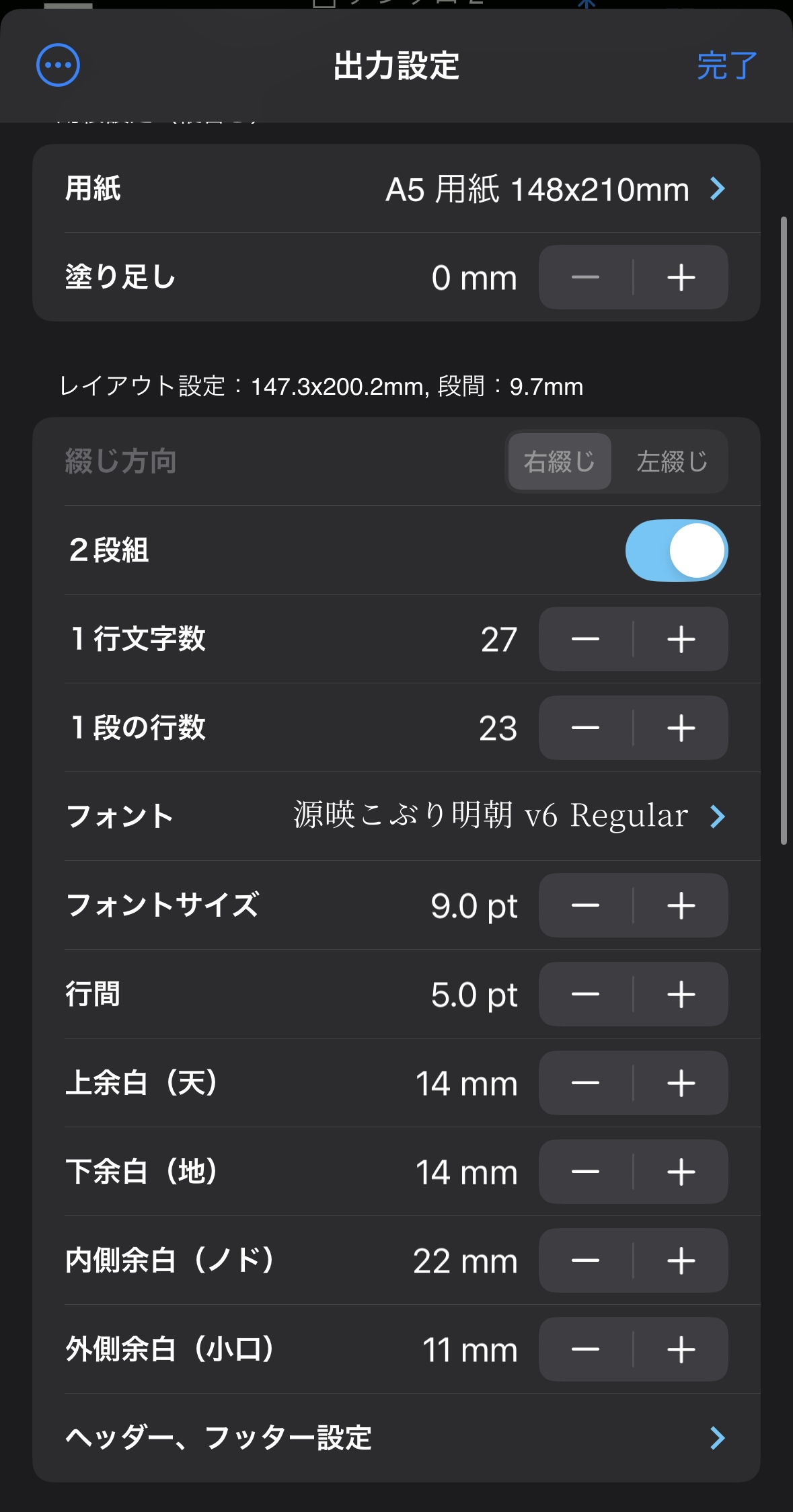 縦式というアプリで小説を作ります。 初めてのA5サイズ二段組で...